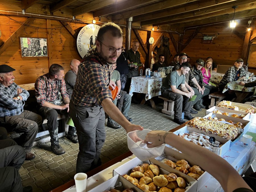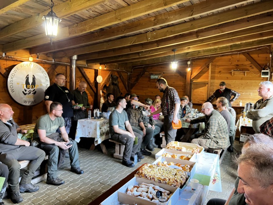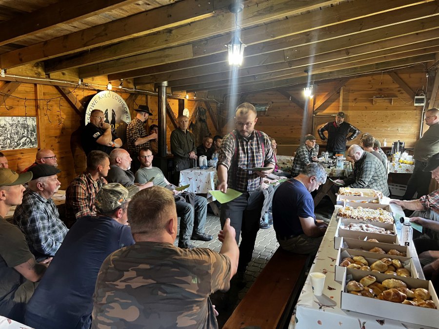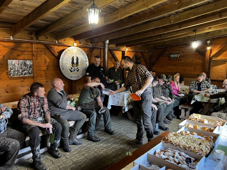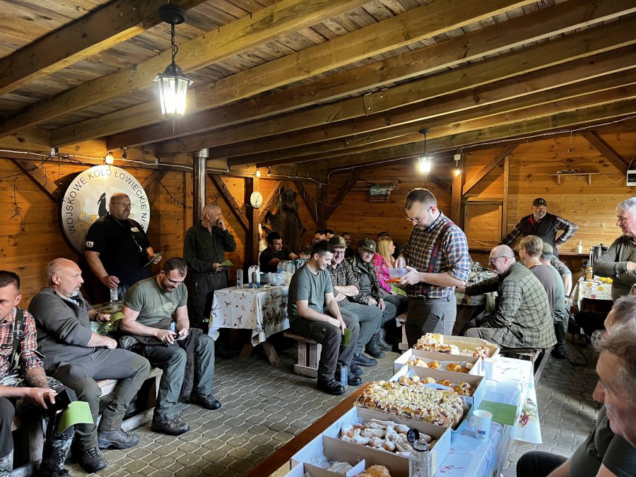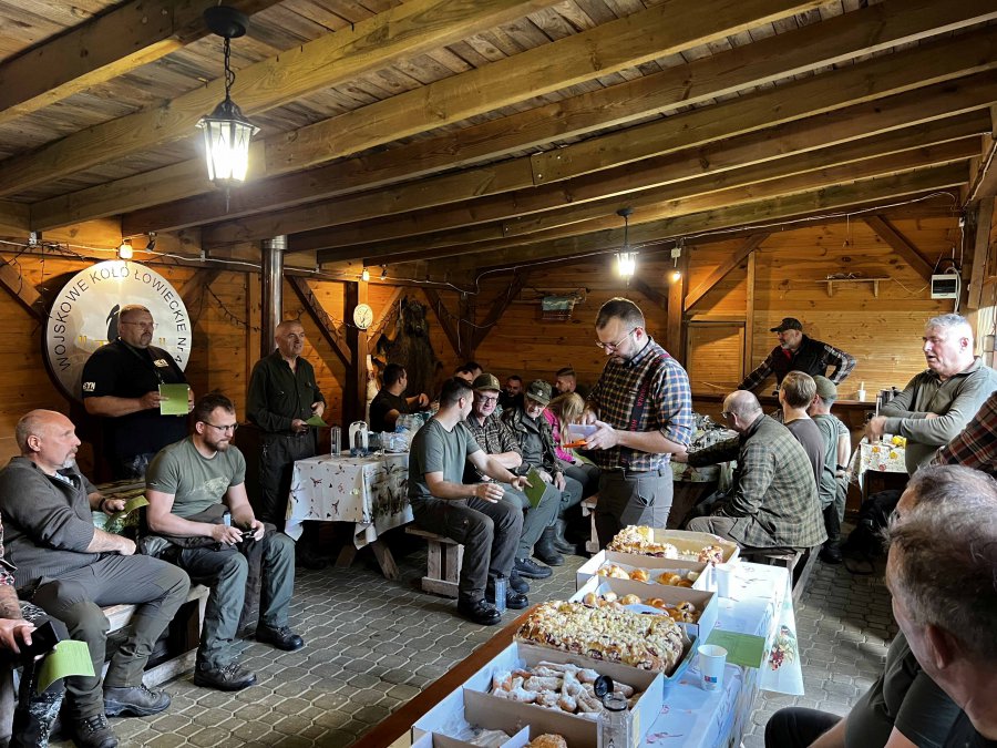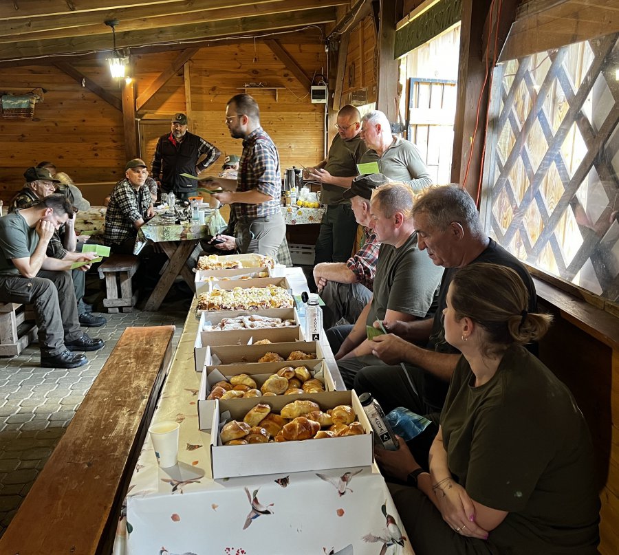 Podczas odprawy przed polowaniem uczestnicy degustowali doskonałe ciasto drożdżowe autorstawa Kol. Marcina Sofija.