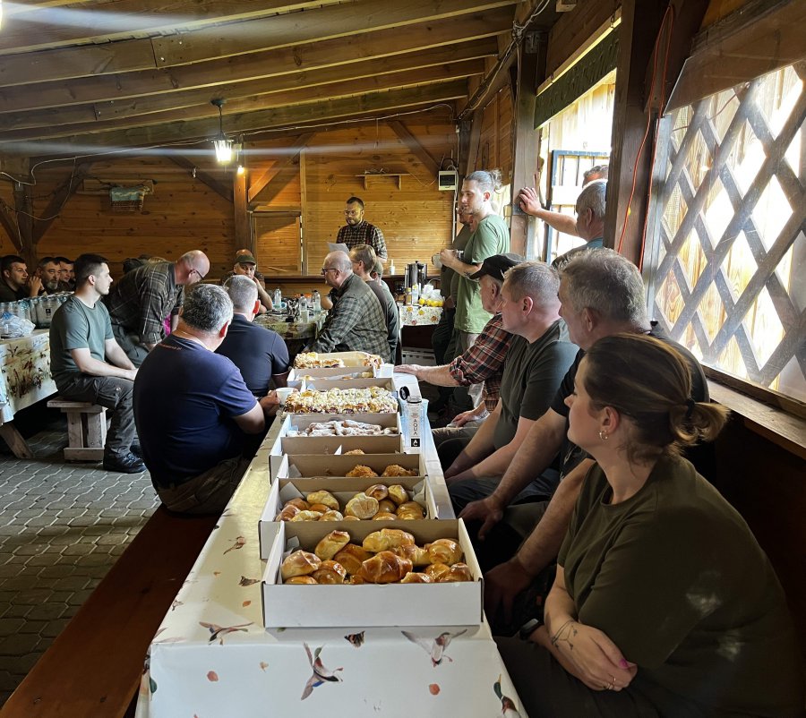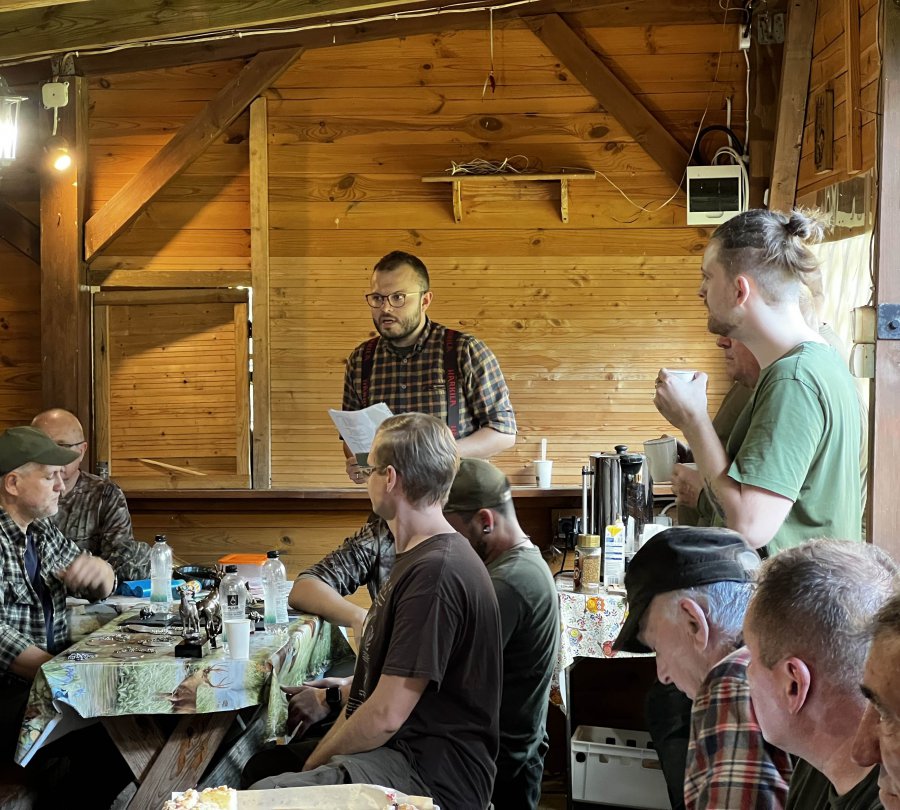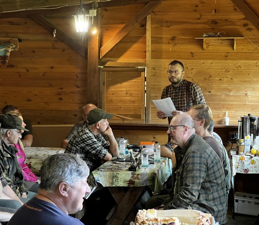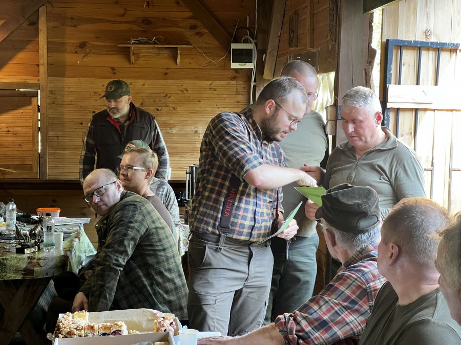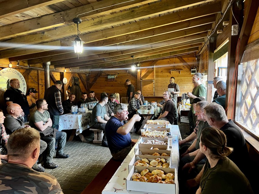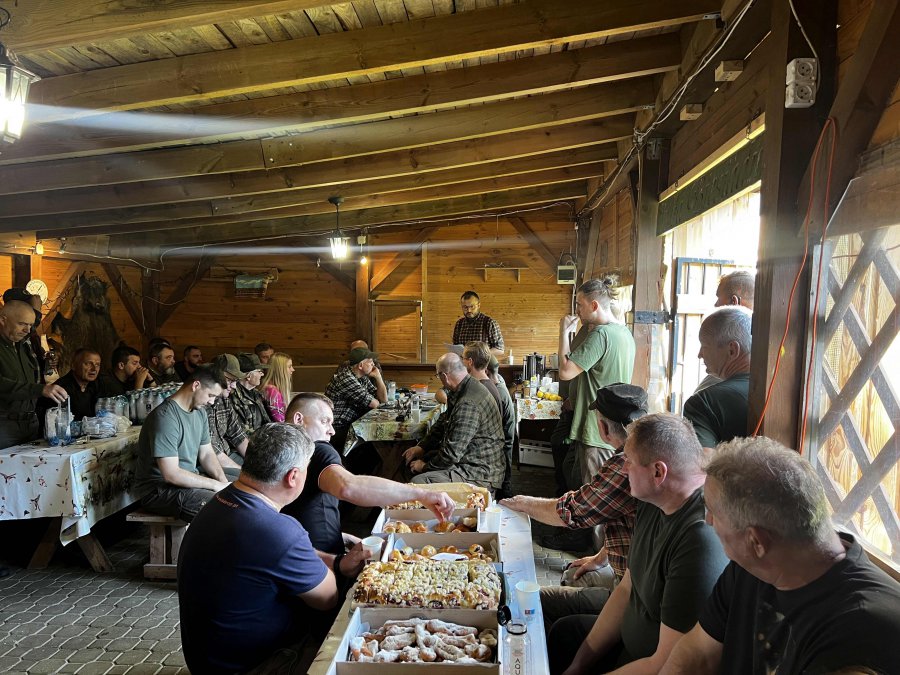 Podczas odprawy przed polowaniem uczestnicy degustowali doskonałe ciasto drożdżowe autorstawa Kol. Marcina Sofija.