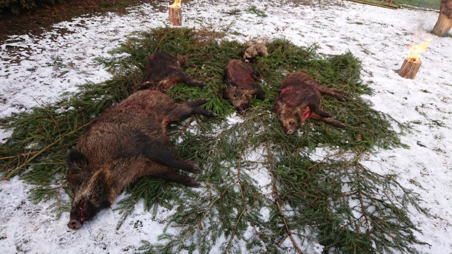 Podobnie jak w drugim obwodzie - tak i na terenie obowidu 65 w dniach 19 i 20 stycznia odbyły sie polowania zbiorowe. Prowadzący polowanie Kol. Marek Hildebrand oraz Łukasz Łątka sprawnie zorganizowali i przeprowadzili łowy. Kameralna atmosfera oraz doskonała pogoda sprzyjały łowcom, którzy miło spędzili dwa dni w knieji. Jak widać na załączonych niżej fotografiach - w naszym Kole dużą rolę przykładamy do przestrzegania zasad bioasekuracji. Kolegom : Jankowi Wardakowi i Krzysiowi Kroszlowi gratulujemy ciekawych trofeów jeleni byków.