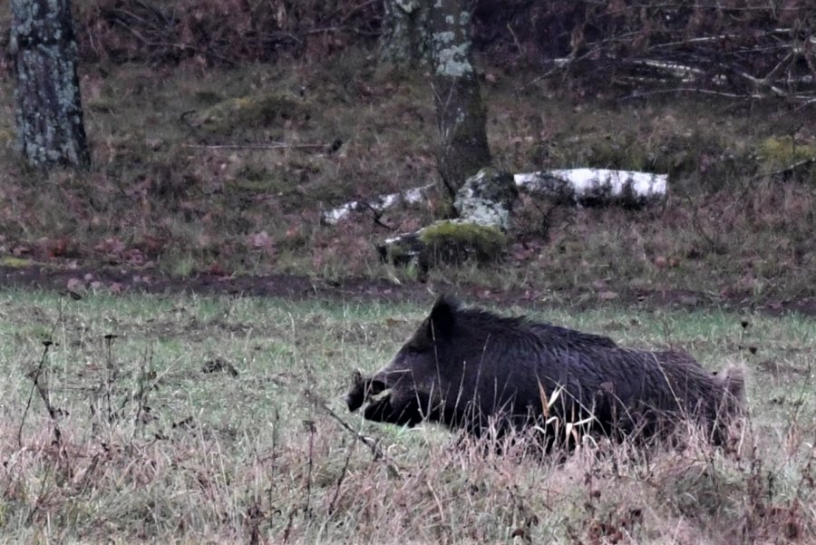 Jak widać na zdjęciach poniżej odyniec z narzeczoną zaskoczył myśliwych jedzących akurat śniadanko i popijających herbatkę. Zwierzęta uciekły w pełnym zdrowiu.