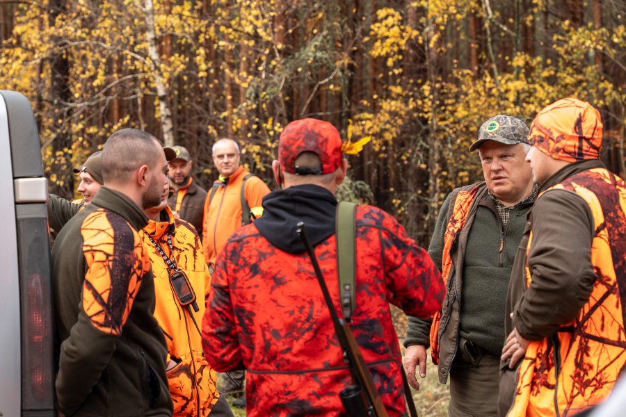 Podczas odprawy zapoznano uczestników z zasadami bezpieczeństwa, sprawdzono dokumenty, omówiono sposób rozmieszczenia w pojazdach, wskazano miejsce przechowywania apteczek pierwszej pomocy, wskazano zwierzynę przeznaczoną do odstrzału, rozlosowano karty stanowiskowe, rozdano II śniadanie.