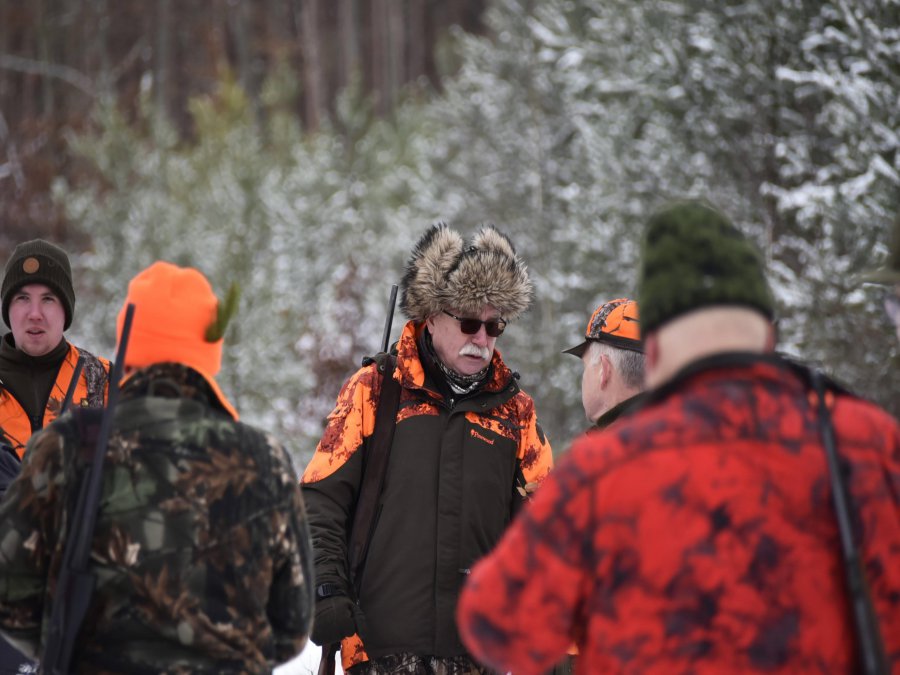W tym roku frekwencja była znakomita, każdego dnia na zbiórce stawiło się ponad 40 myśliwych w tym wielu gości. Pogoda dopisała. Zwierz również. Pokrywa śnieżna i mróz sprawiają, że chętniej wyruszamy na łowy. Odprawa, losowanie kart, pojazdy gotowe, w drogę.
