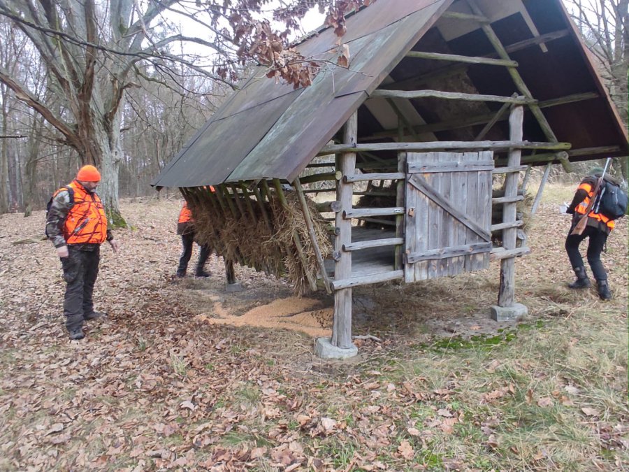 Po trzecim miocie - tak jak już od lat w naszym Kole zebraliśmy się pod paśnikiem na sektorze 21 i podzieliliśmy się opłatkiem ze zwierzyną, znalazł się również worek kukurydzy na "wigilijny stół". Opłatek i karmę wykładają najmłodsi stażem myśliwi oraz stażyści. Taka to nasza tradycja.