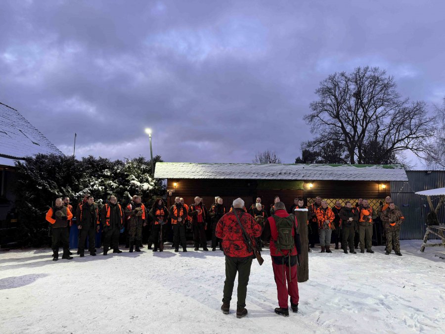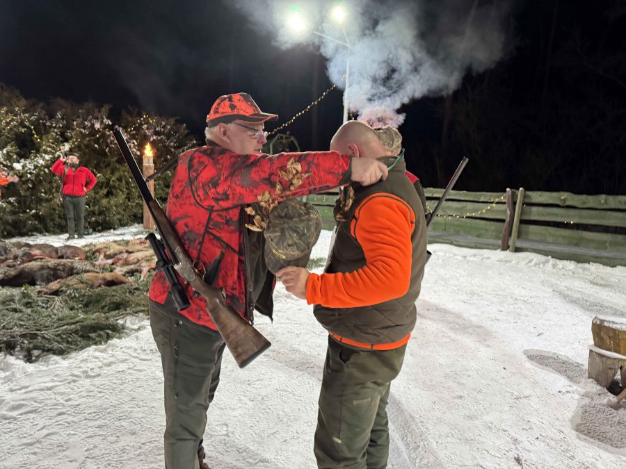 Siarczysty mróz nie przeszkadzał w tym dniu łowcom i już w pierwszych miotach rozległy się strzały, część z nich dosięgła celu, a część poszła "Panu Bogu w okno".