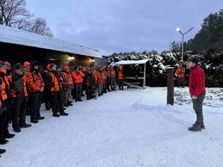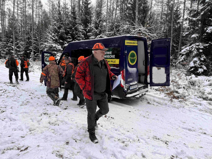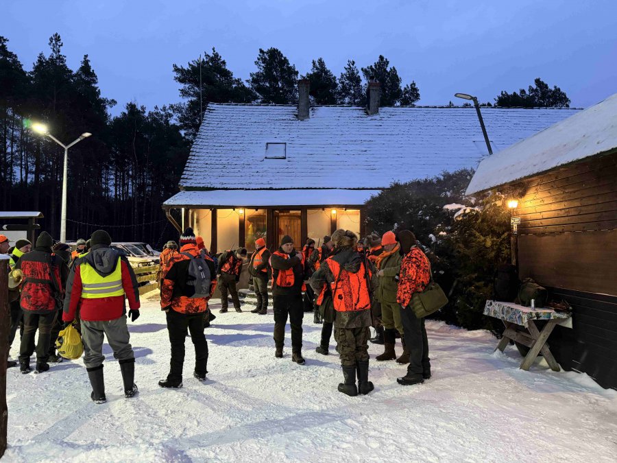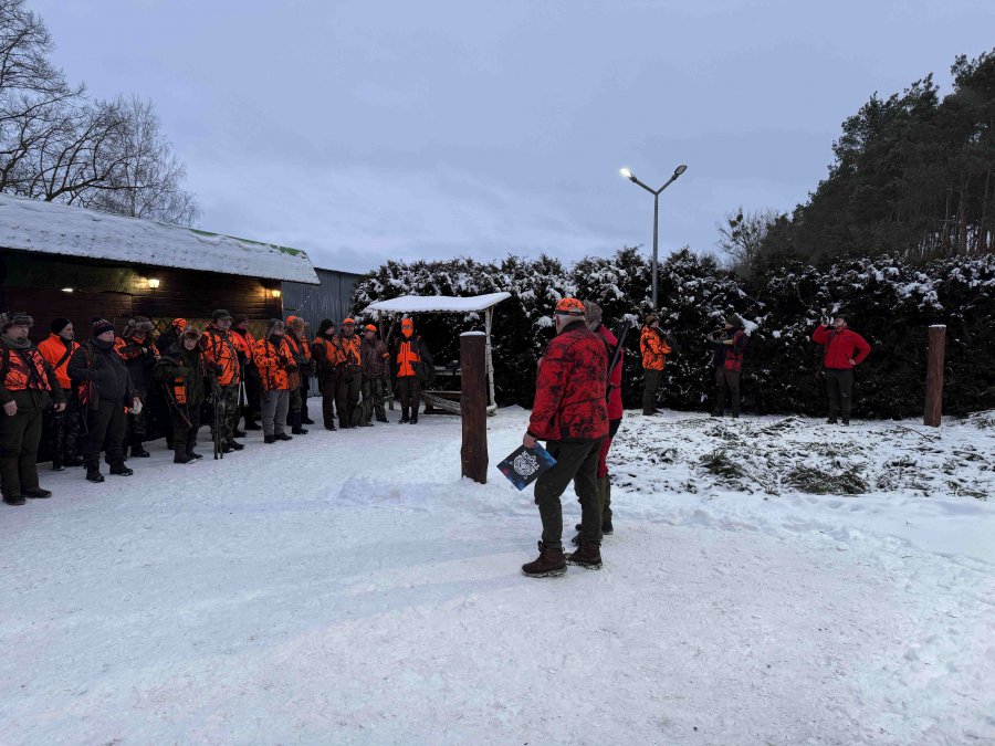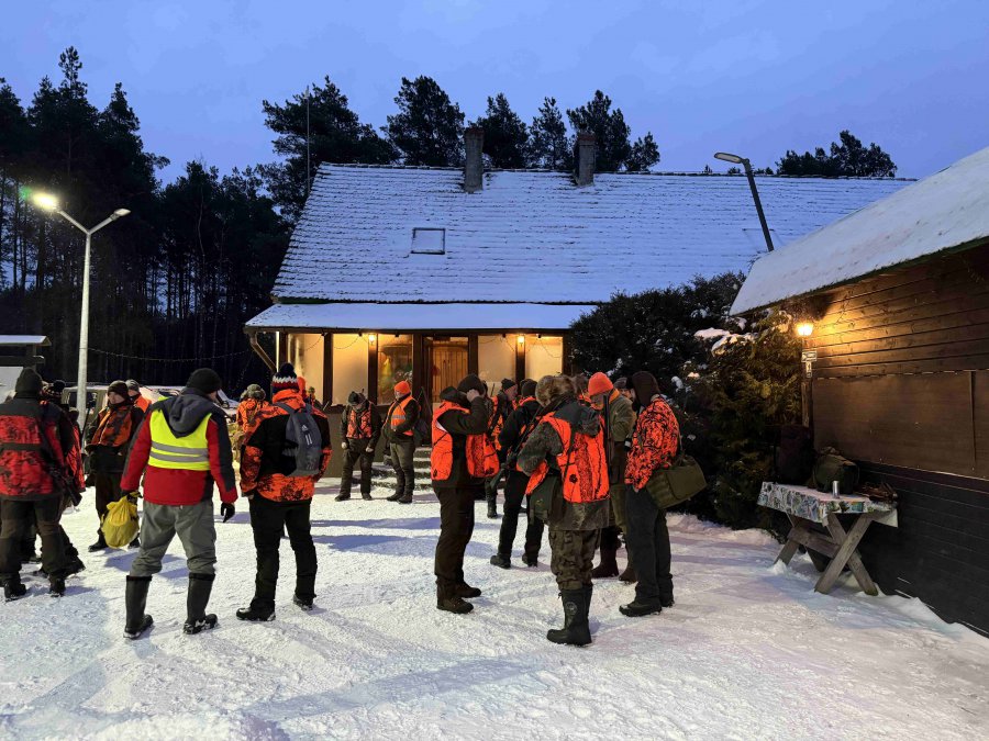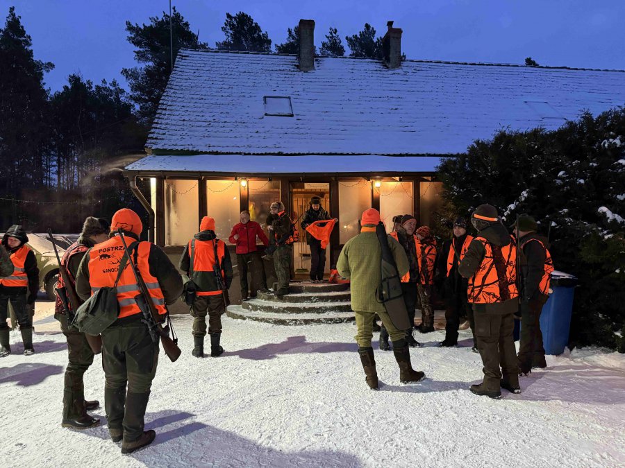 Odprawa, omówienie zasad bezpieczeństwa, losowanie stanowisk, bułki ( pieczołowicie przygotowane wczesnym rankiem ) i łowcy ruszyli w las.