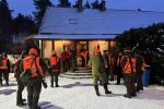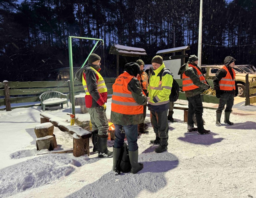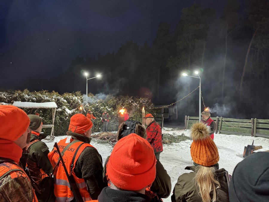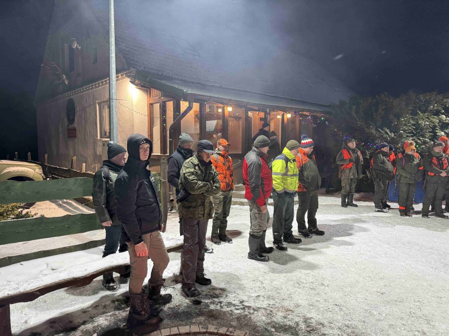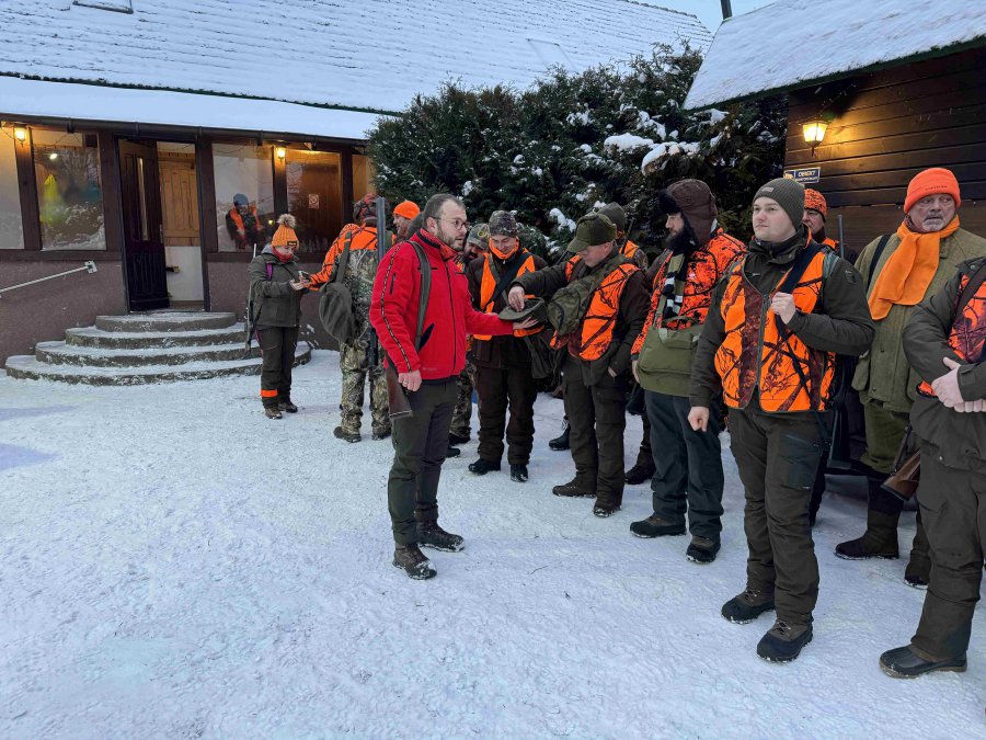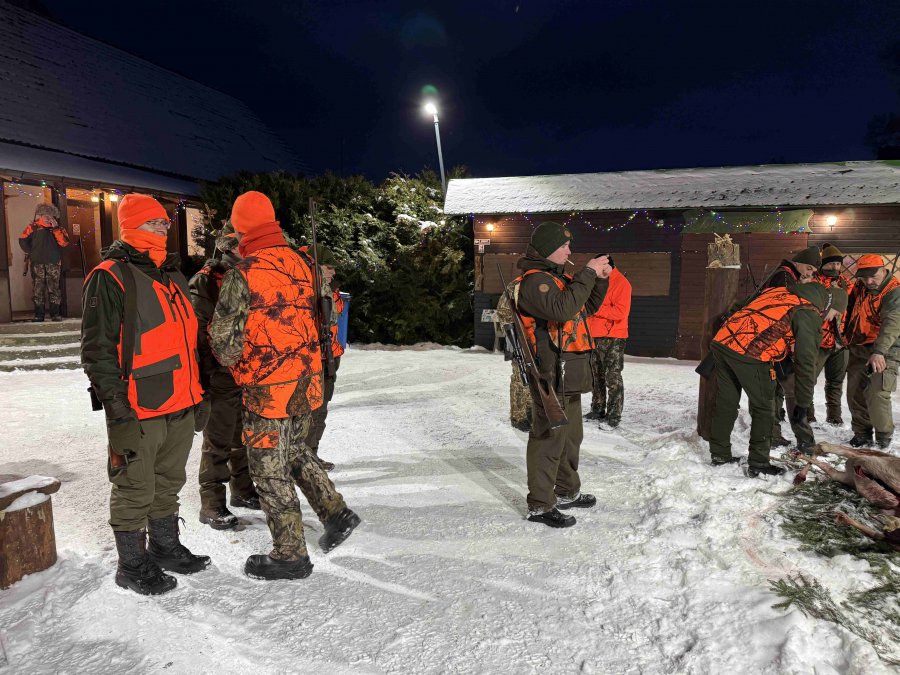 Odprawa, omówienie zasad bezpieczeństwa, losowanie stanowisk, bułki ( pieczołowicie przygotowane wczesnym rankiem ) i łowcy ruszyli w las.